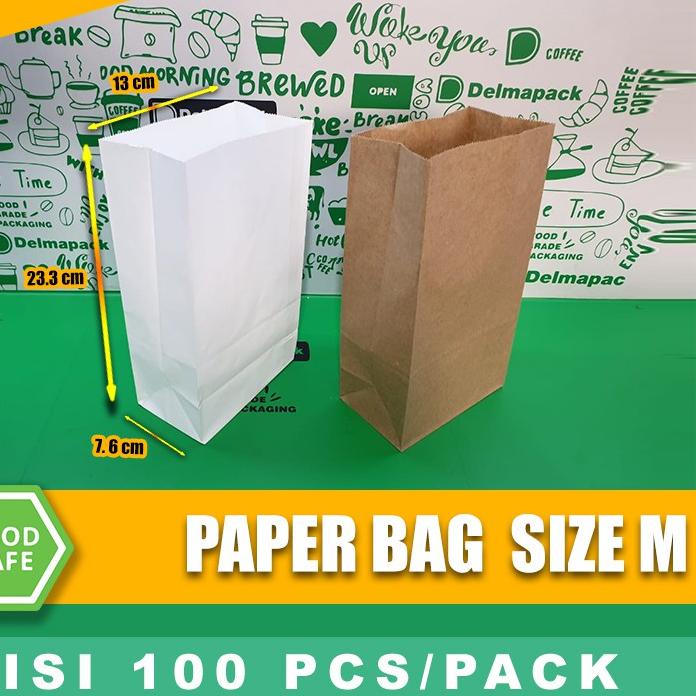 PAPER BAG KANTONG KERTAS ( M ) / KANTONG ROTI, FRIED CHICKEN, SNACK - 100 PCS