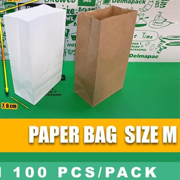 PAPER BAG KANTONG KERTAS ( M ) / KANTONG ROTI, FRIED CHICKEN, SNACK - 100 PCS