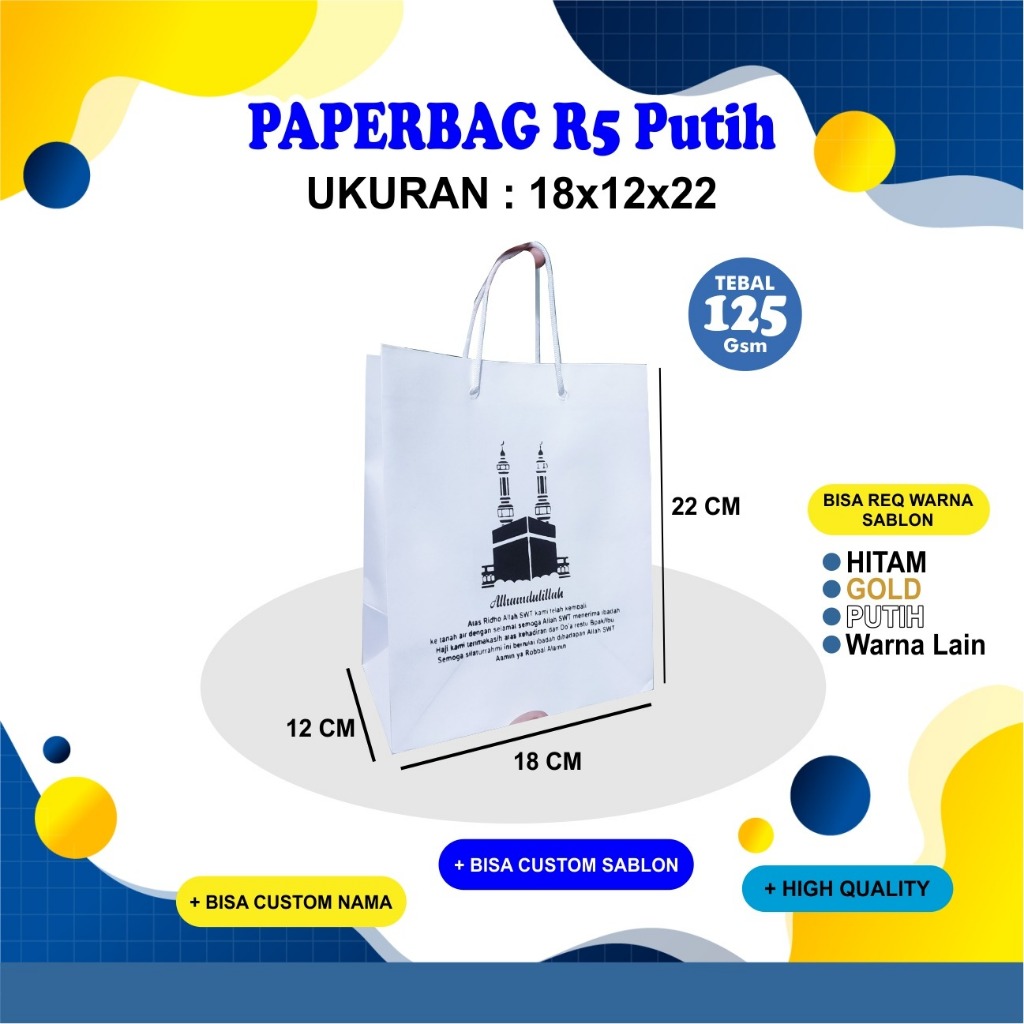 PAPER BAG PUTIH POLOS /SABLON PAPERBAG R5 UK 18X12X22 / TAS HAJATAN /PAPER BAG