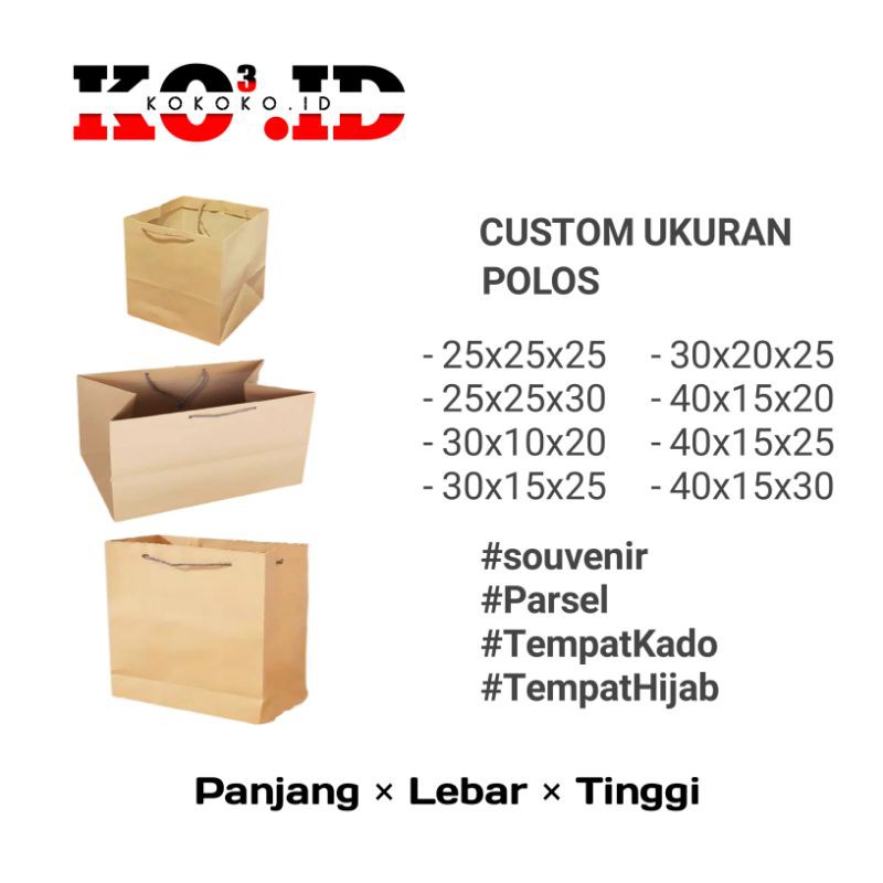 ° Ukuran PaperBag adalah Panjang X Lebar X Tinggi.