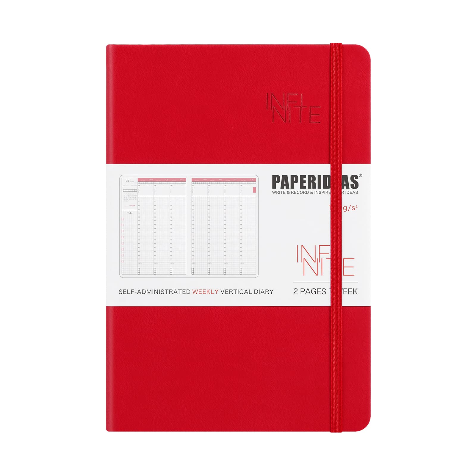 PAPERIDEAS Бесконечный еженедельный вертикальный планер формата А5 в твердом переплете для самостоятельного заполнения (красный)