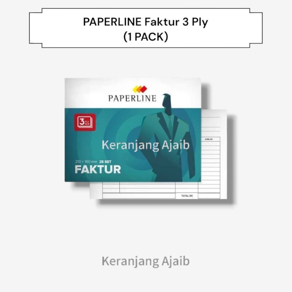 Paperline faktur 3 ply adalah buku faktur yang terdiri dari tiga lembar kertas (3 ply) yang digunakan untuk mencatat transaksi bisnis, biasanya dalam bentuk nota atau faktur. Kertasnya menggunakan teknologi NCR (No Carbon Required) sehingga tidak memerlukan kertas karbon untuk membuat salinan, untuk "3 ply" merujuk pada tiga lapisan kertas dalam satu lembar faktur: kertas asli (biasanya putih), kertas duplikat (biasanya kuning), dan kertas triplikat (biasanya merah).