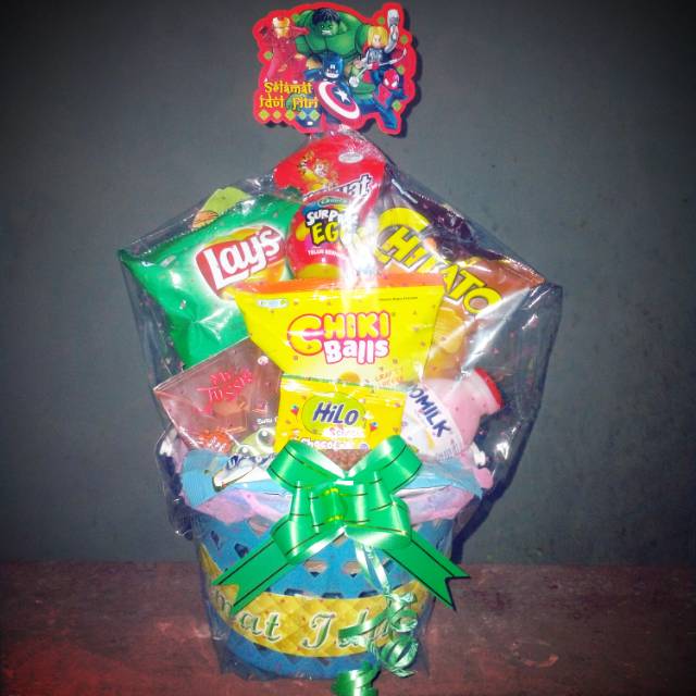 Parcel / bingkisan anak dengan hiasan dan pernak pernik yg lucu buat si kecil nya..lengkap dengan kartu ucapan dan amplop angpao yg unik..langsung order yuu sist,untuk pemesanan po beberapa hari tergantung banyaknya pesanan!!!!.