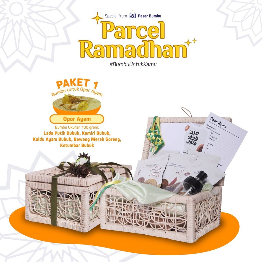 Menyambut Ramadhan Pasarbumbu.id menghadirkan PARCEL LEBARAN spesial lebaran tahun ini, yang akan menjadi salah satu cara untuk mendekatkan yang jauh dengan sentuhan parcel unik dari pasarbumbu.id