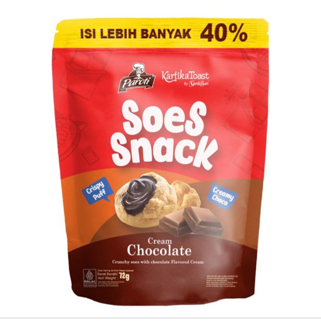 Paroti Soes Snack Chocolate merupakan snack persembahan Paroti yang hadir dengan rasa coklat yang lezat, Tersedia dalam kemasan pouch yang praktis dan mudah untuk dibawa kemanapun. Cocok untuk dijadikan camilan favourite saat bepergian atau berkumpul dengan keluarga dan teman.