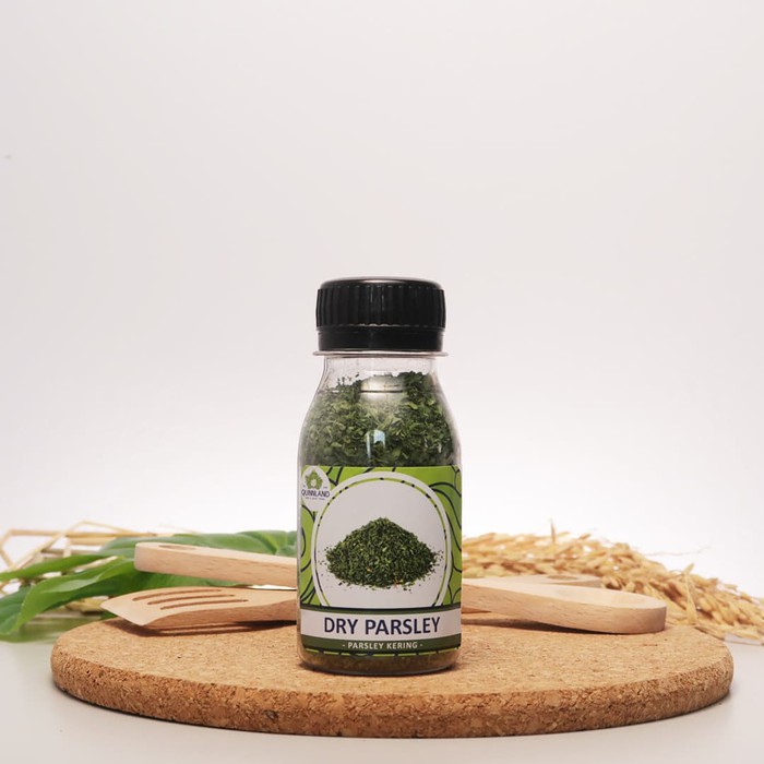Parsley kering biasa ditaburkan di atas pizza, spaghetti, mie, bubur ataupun sop, wangi dan warna dari daun parsley akan menambah lezat makanan . Bisa utk bubur / masakan pada makanan anak .