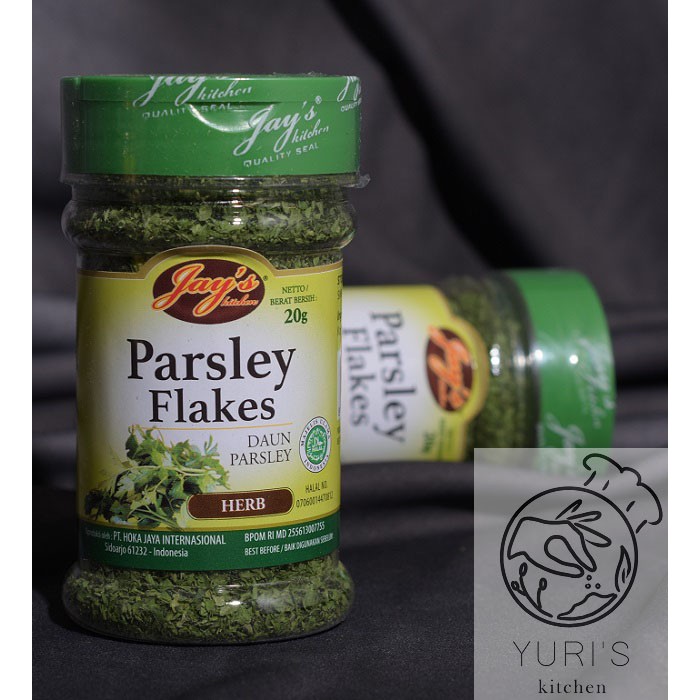 PARSLEY FLAKES dari Jay's merupakan herbs yang cocok untuk garnish disetiap makanan.