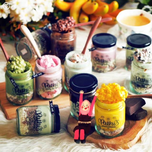 Jadii Pathi's Chocolade adalah coklat lezat yang dipadu dengan renyah nya rice crispy dan disajikan secara unik di dalam jar 〓
