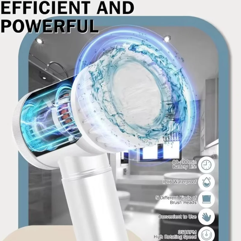 Electric Spin Scrubber,Bathroom Cleaning Brush Power Scrubber with 5 Replaceable Brush Heads, Electric Cleaning Brush