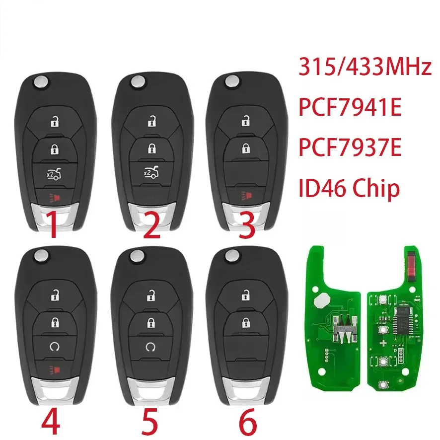PCF7941E PCF7937E 2/3/4 Button Flip Remote Key ID46 Chip 315/433Mhz for Chevrolet Cruze Avo Trailblazer Onix Tracker Smart Key