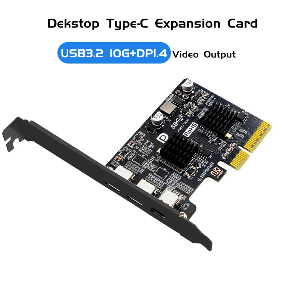 PCI Express Card 2 USB C 10Gbps USB3.2 Gen2 DP1.4 4K@60Hz PCIE X4 X8 X16 Card Expansion Add on Card Adapter for Windows/Linux