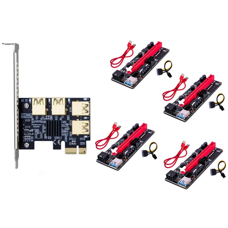 PCIE 1X к 4 Pci-Express адаптер + переходная плата VER009S USB3.0 к PCI-E 1X к 16X графическая карта Удлинительный кабель для майнинга CNIM Hot