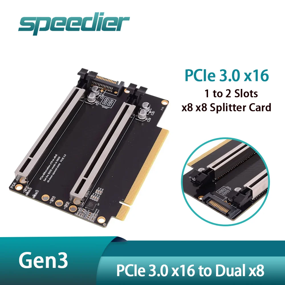 PCIE 3.0 X16 To X8 X8 1-to-2 Split Dual X8 Card Gen3 Expansion Card Height Increase Adapter Slot for Graphics Card SATA Power