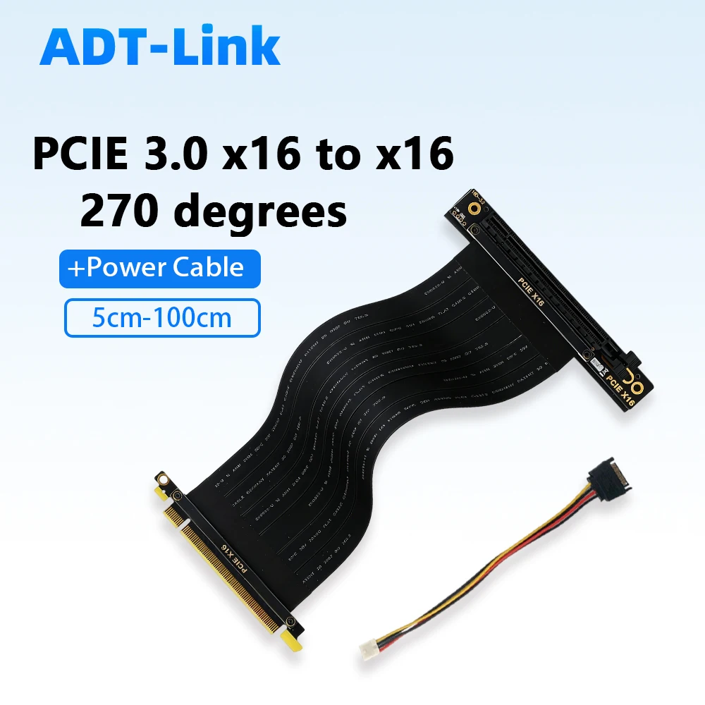 PCIe 3.0 X16 To X16 Graphics Card Extension Riser Cable PCI-E Angle 270 Degree for GPU Vertical + Power Adapter Cable 5cm-100cm