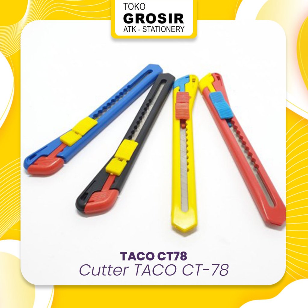 [PCS] CUTTER KECIL TACO / CUTTER RENTENG CT-78 >>>> Harga per pcs Ukuran : Seperti Kenko A-300 > Tipe : Limited 78 > Warna : Merah, Kuning, Biru, dan Hitam > Dapat di isi ulang menggunakan isi cutter tipe A-100 #cutter #cutterkecil #cuter #taco #alatpemotong #pisau