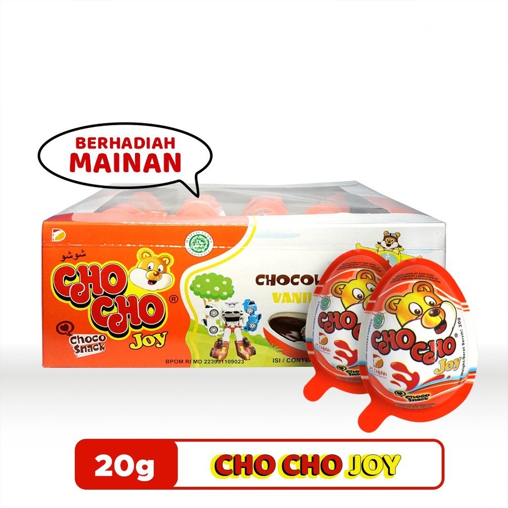 CHO CHO JOY MINI 20g Telur lucu berisi cokelat hitam dan cokelat putih dengan rasa yang amat nikmat dipadu dengan wafer bulat yang renyah. Cocok jadi teman nyemil sehat setiap hari. Ayo koleksi semua mainan seru dari Cho Cho Joy Mini.