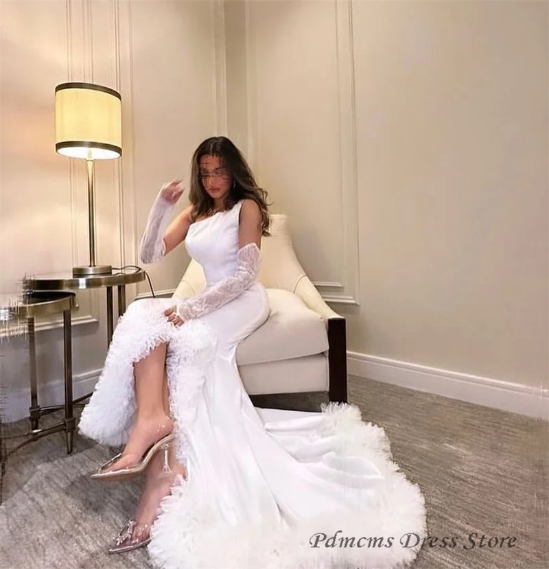 PDMCMS белое платье-Русалка на одно плечо, вечерние платья с разрезом, юбка-годе, элегантные женские платья