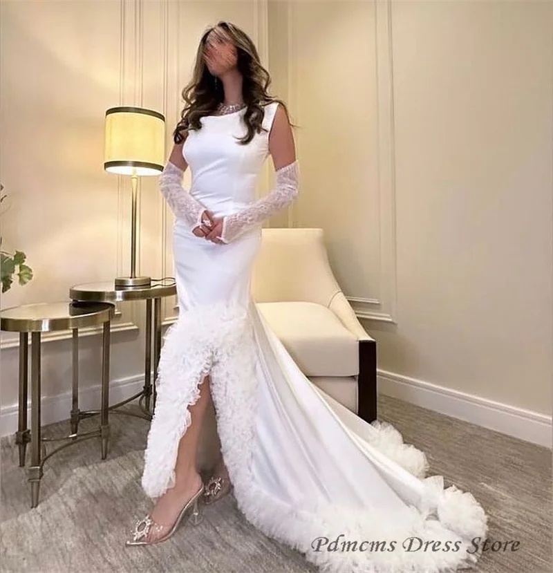 Женское вечернее платье макси, белое платье с длинным рукавом и Боковым Разрезом, для выпускного вечера