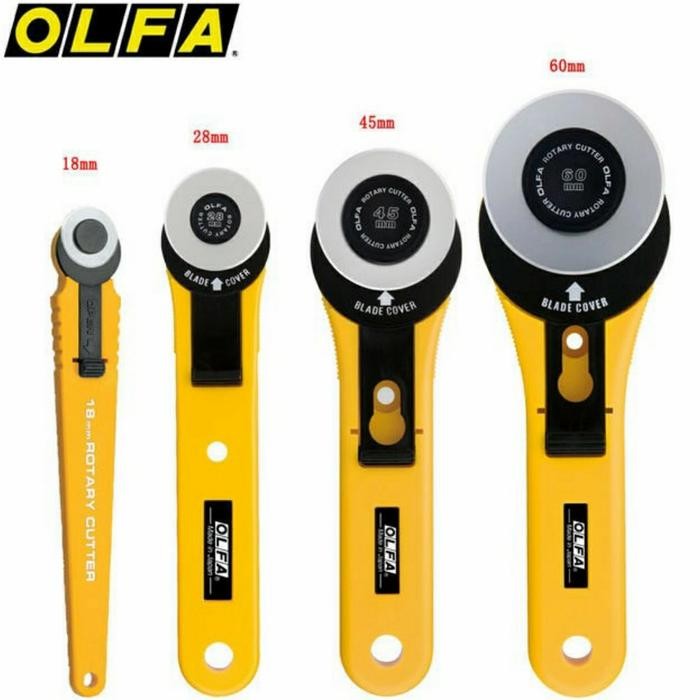 Pemotong putar hobi mudah digunakan pisau silet bergulir sempurna untuk memotong beberapa lapis kain, bagus untuk memotong kotak, strip, lingkaran dan pola dengan cepat dan efisien, untuk hasil terbaik dan untuk mempertahankan tepi tajam pada pemotong putar, sebaiknya digunakan di atas alas potong rotari olfa, (dijual terpisah)