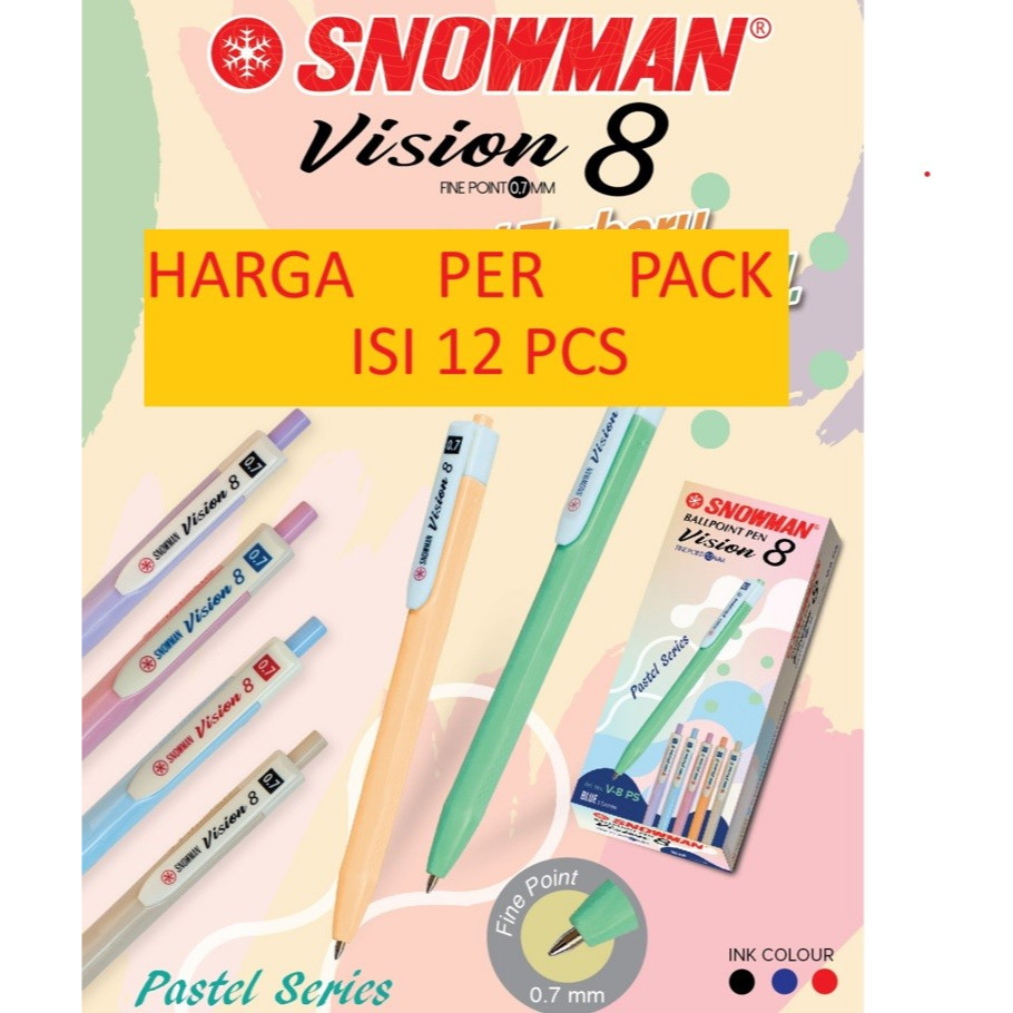 *Pulpen Snowman vision 8 merupakan pulpen yang sangat sering digunakan dengan grip yang nyaman dan tinta yang bagus serta harga terjangkau, banyak user senang menggunakan pulpen ini.