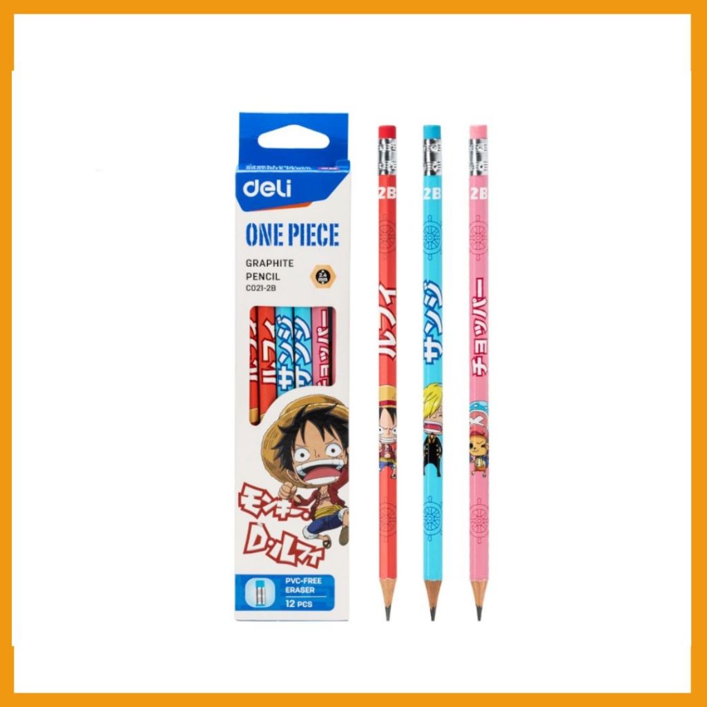 Deli One Piece Graphit Pencil / Pensil Kayu Grafit 2B Lucu Kartun One Piece Free Rautan Box / Tube EC02X-2B