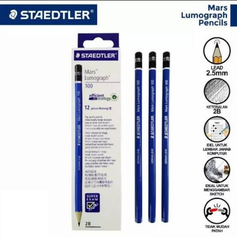 Pensil ini merupakan pilihan yang tepat untuk menghadapi ujian, karena pensil staedtler ini memiliki tingkat kehitaman yang bisa terbaca oleh scanner maupun komputer.