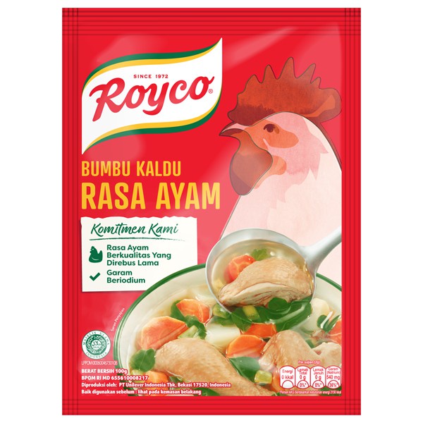 Bumbu pelezat serba guna masakan yang membantu para Ibu membuat hidangan lezat untuk keluarga. Yuk, Ibu gunakan Royco untuk membuat masakan semakin istimewa. Terbuat dari daging ayam pilihan Membuat masakan menjadi lebih lezat.