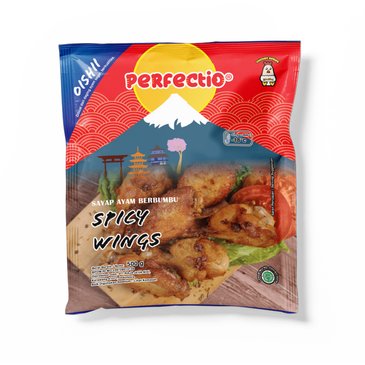 PERFECTIO SPICY WINGS 500 GRAM, merupakan makanan instan yang terbuat dari olahan pilihan dan diproses secara higienis bersertifikasi HALAL dari MUI dan diproduksi berdasarkan standar BPOM RI, Terbuat dari Olahan Berkualitas ini dapat disajikan dengan berbagai menu makanan lainnya.
