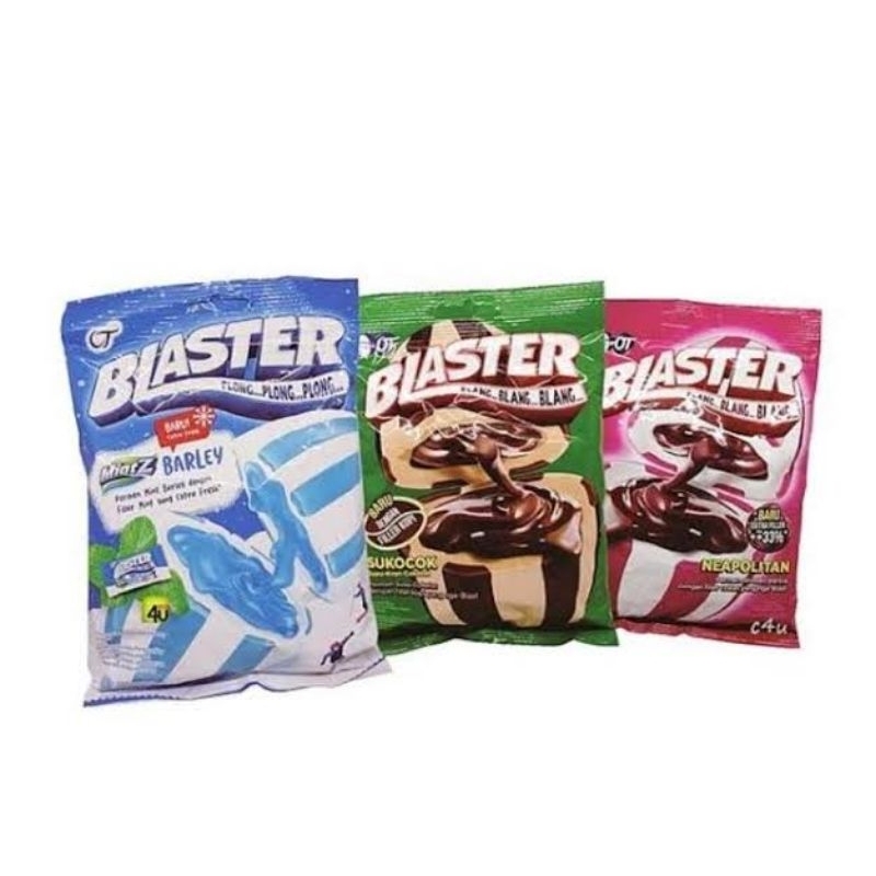Blaster Permen Neapolitan merupakan permen belang yang crunchy dengan kombinasi rasa yang unik dan coklat di dalamnya, berpadu menjadi satu sehingga memberikan kenikmatan sensasional.