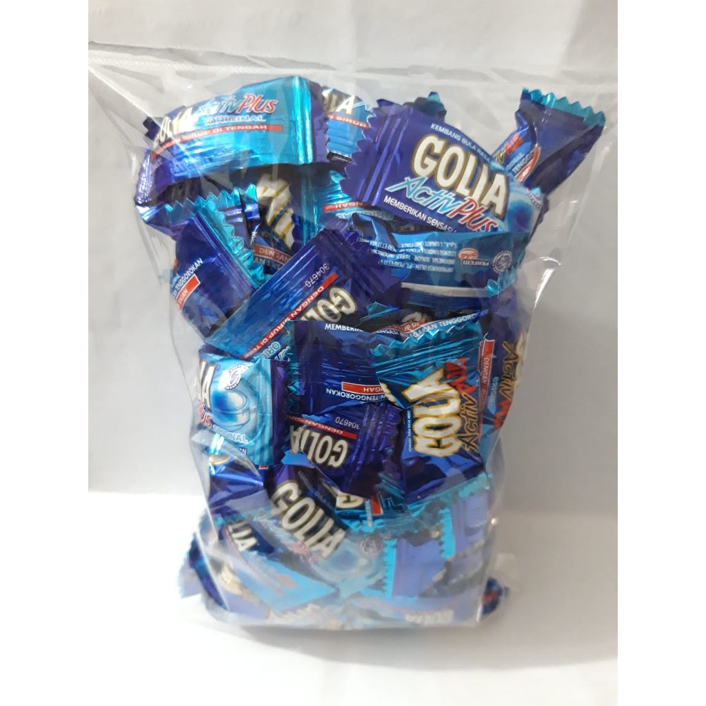 Permen golia activ plus original Dengan sirup di tengah. Memberikan sensasi melegakan tenggorokan.