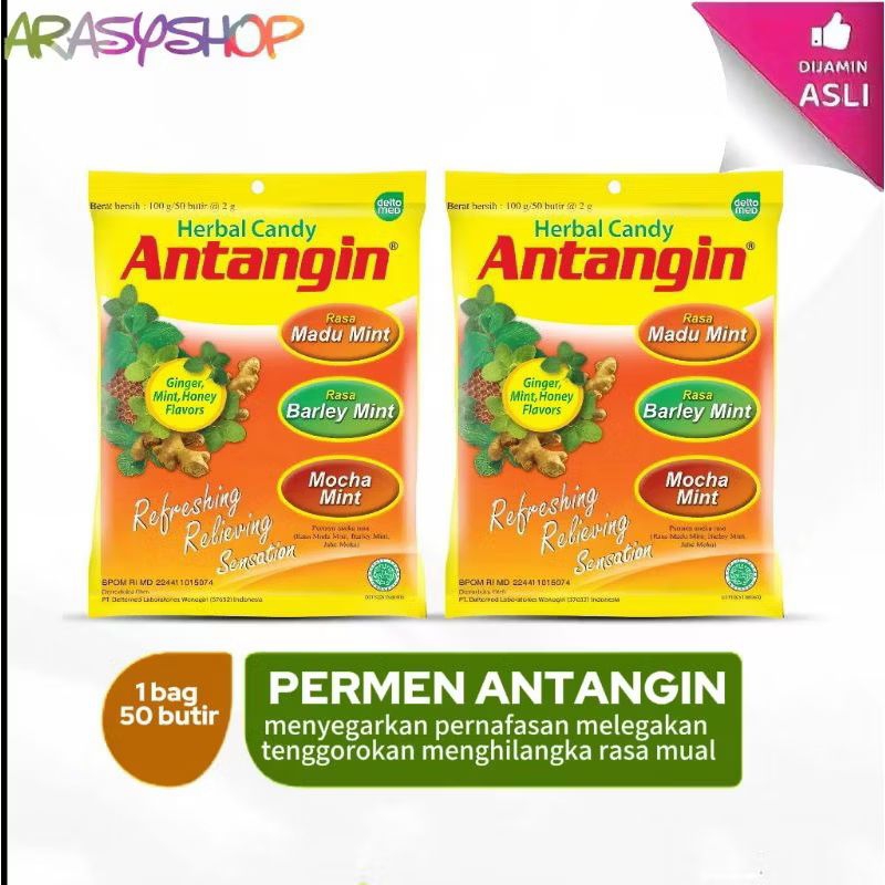 Permen Antangin adalah permen herbal dengan rasa yang menyegarkan karena terbuat dari kandungan utama ekstrak jahe dan madu. Permen ini juga memberikan efek melegakan tenggorokan dan juga pernapasan dengan sensasi mint yang menyegarkan. Dengan 3 varian rasa, yakni Honey Mint, Fresh Mint dan Mocca Mint.