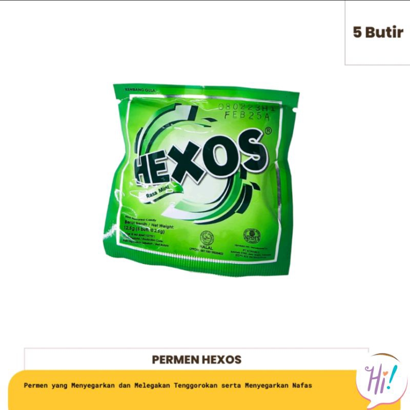 PERMEN HEXOS PELEGA TENGGOROKKAN/ 1 SACHES 5 PCS @12.5 GR