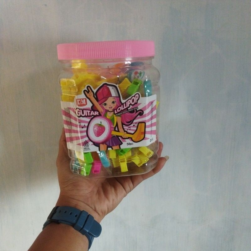 PERMEN LOLIPOP PELUIT BENTUK GITAR RASA BUAH ISI 50 PCS