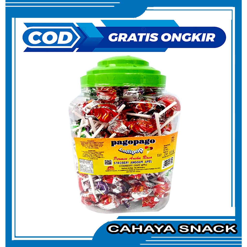 PERMEN PAGO PAGO LOLIPOP 1 TOPLES ( PERMEN ANEKA RASA ) ISI 100 PCS / netto 800 Gram