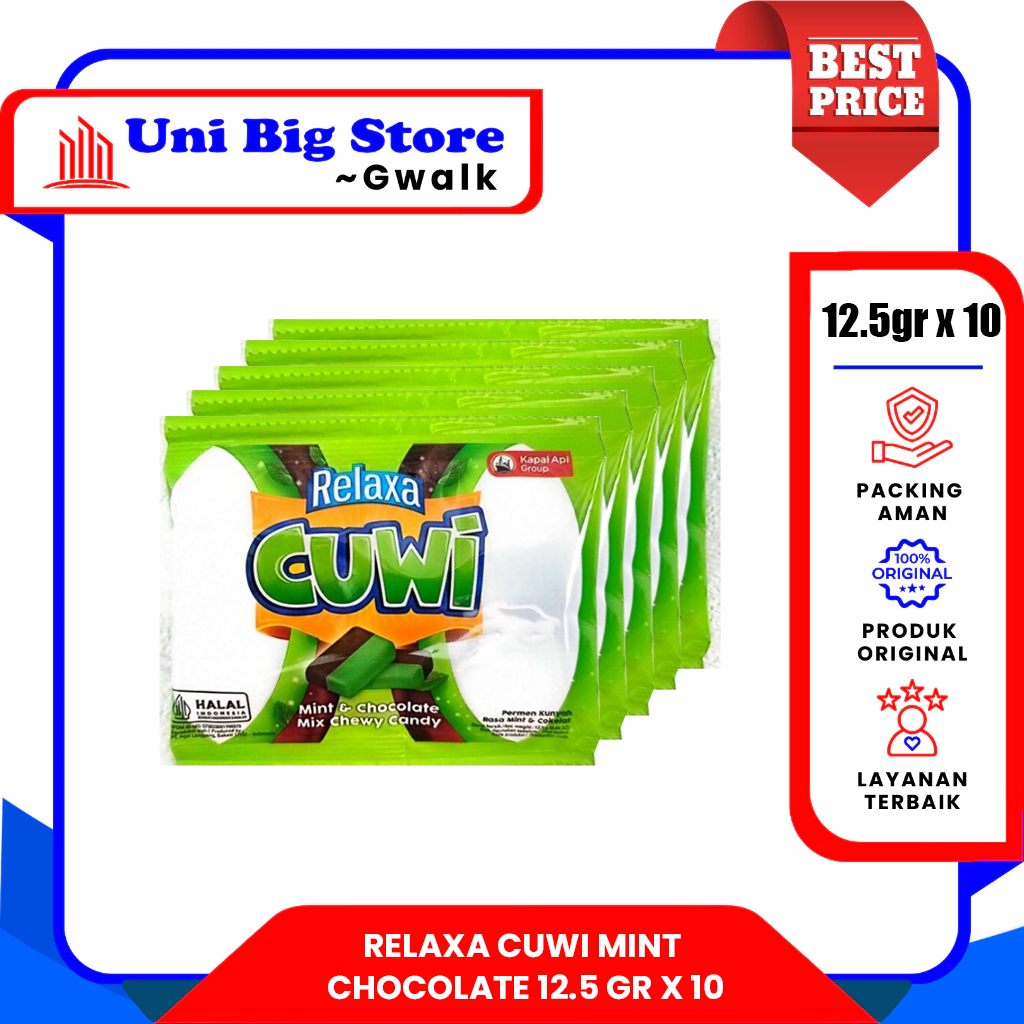 PERMEN RELAXA CUWI MIX MINT & CHOCOLATE CHEWY CANDY RENTENG - (12.5 gr x 10 pcs)