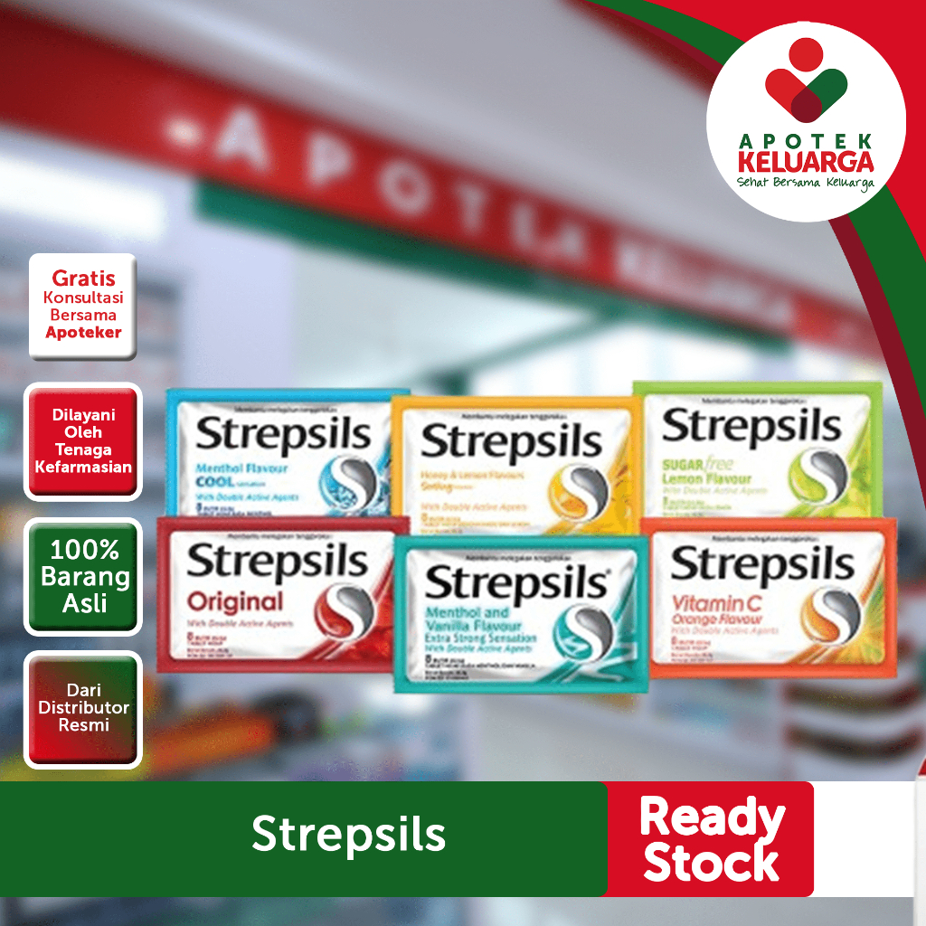 STREPSILS merupakan permen hisap yang digunakan untuk memberikan rasa lega di tenggorokan yang sakit. Permen ini juga digunakan untuk meringankan rasa sakit akibat perlukaan atau lesi di mulut dan tenggorokan serta mengurangi bau mulut. Selain itu, Sterpsils juga dilengkapi dengan antibakteri untuk membantu membunuh bakteri penyebab sakit tenggorokan dan infeksi mulut.