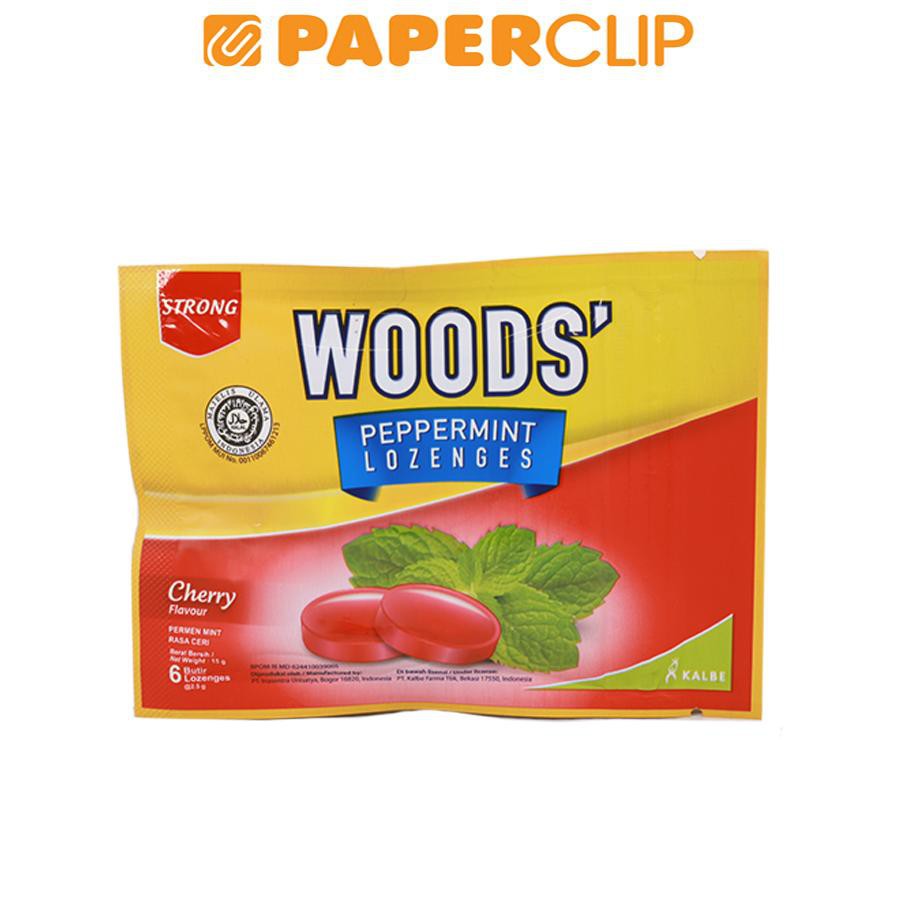 Permen Woods Rasa Cherry Dengan Kandungan Papermint Dan Mentholyang Bekerja Secara Sinergis Untuk Melegakan Dan Membunuh Kuman Di Tengorokan.