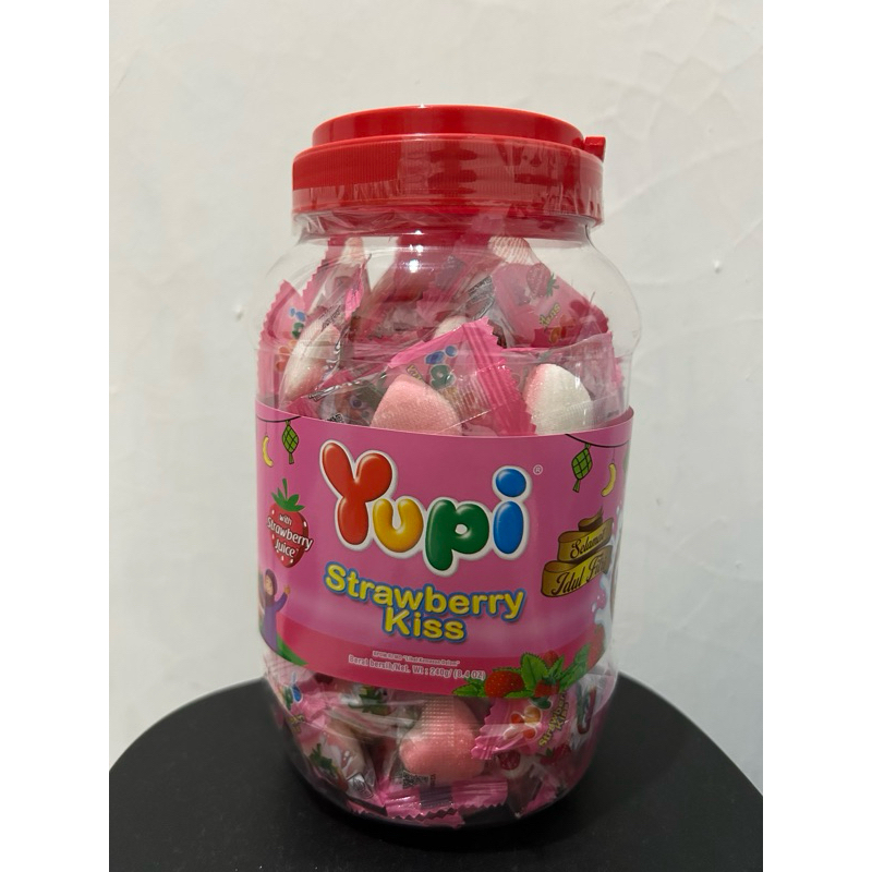 PERMEN YUPI STRAWBERRY KISS JAR TOPLES