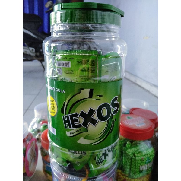 permen hexos kembang gula 1 toples isi 50pcs ecer minimal ambil 10pcs ( 2000/pcs)