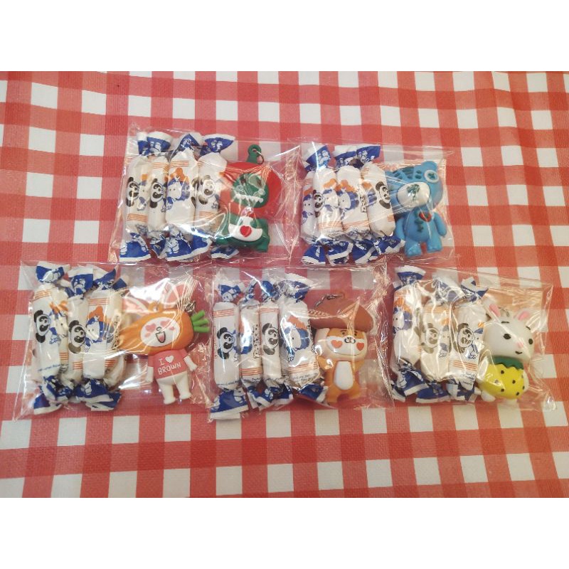 permen susu panda isi 6 pcs dengan souvenir gantungan kunci / bolpoin gel karakter yang lucu dan imut