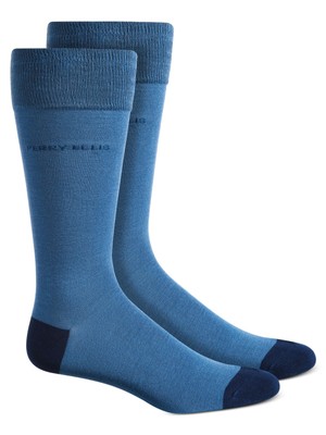 PERRY ELLIS Синее платье в стиле колор-блок Носки с круглым вырезом, Синий