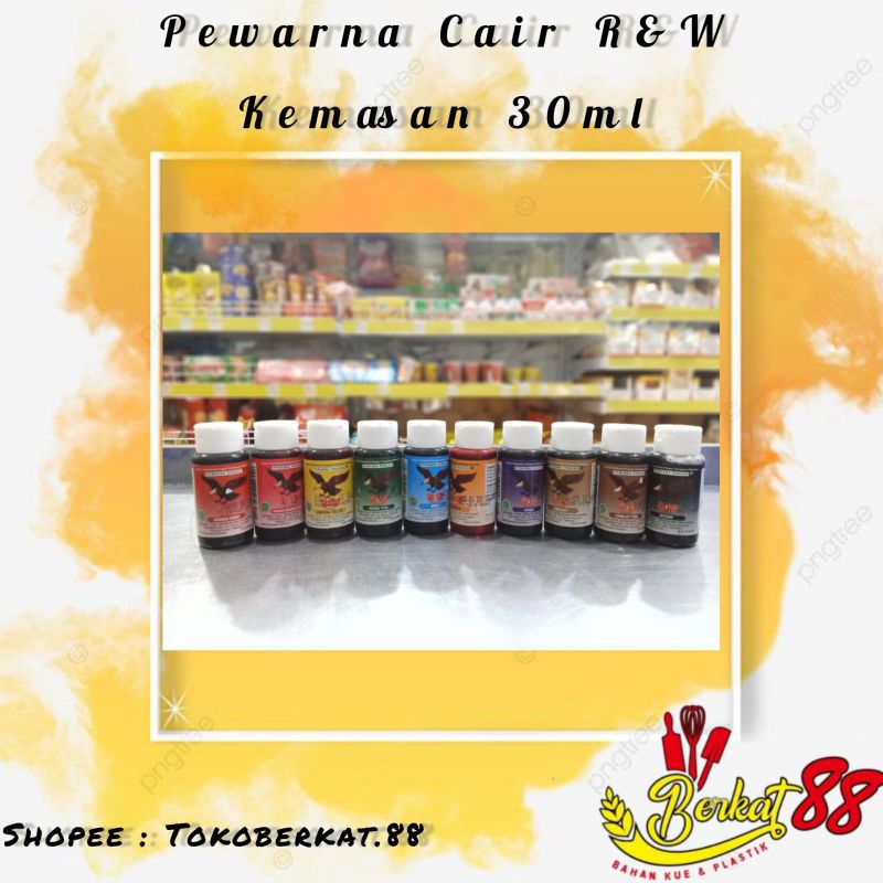 Pewarna cair R&W, atau Pewarna Makanan Rajawali R&W, adalah pewarna makanan cair yang banyak digunakan dalam berbagai produk makanan dan minuman untuk memberikan warna yang lebih cerah dan menarik. Pewarna ini diklaim aman untuk dikonsumsi (FOOD GRADE) dan hemat dalam pemakaian.
