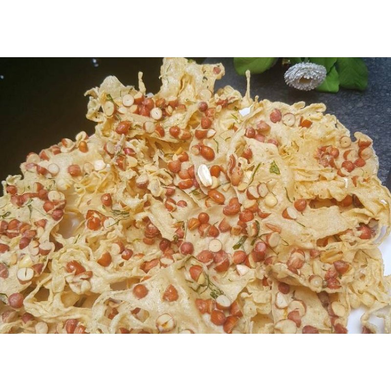 peyek kacang renyah, dengan irisan kacang dan daun jeruk jadi makin mantap