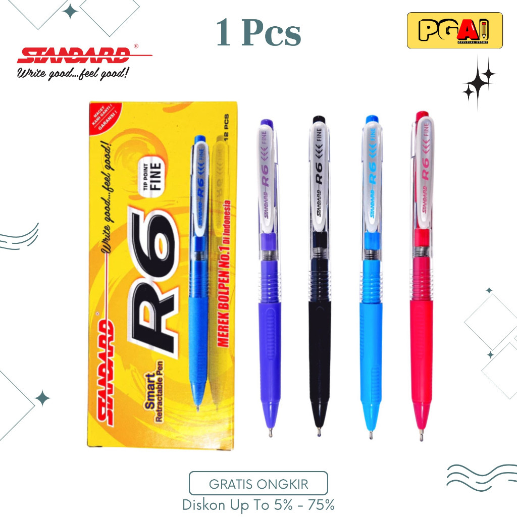 (PGAI) BOLPOIN PULPEN STANDARD R6 1 PCS TINTA HITAM ( ALAT TULIS / PEN / BALLPOINT / PENA )