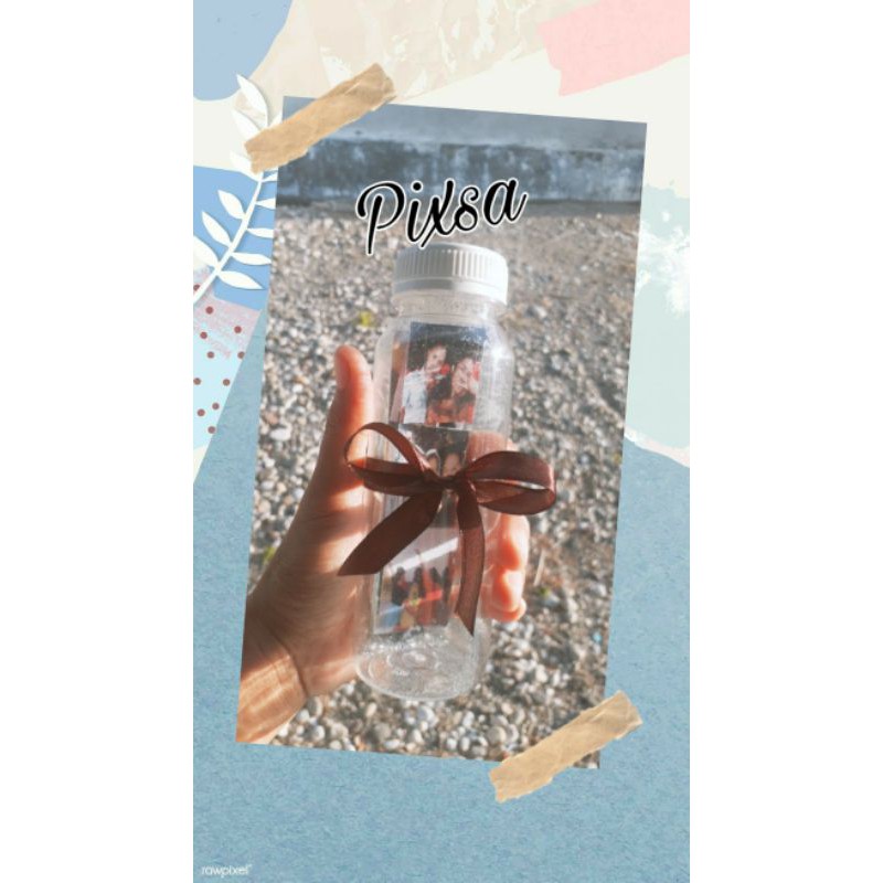 Photo Memo ini adalah botol yang di dalamnya ada 18 foto dan di tambahkan gliter untuk hiasan luarnya memakai pita (seperti di gambar yah)