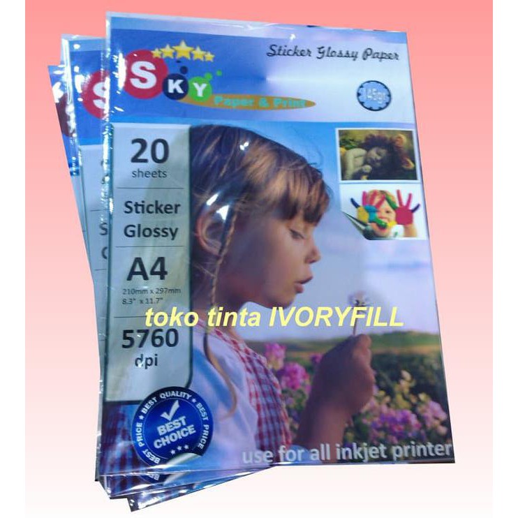 *) resolusi 5760 dpi isi 20 lembar kertas sticker glossy, mampu mencetak photo resolusi tinggi dengan hasil maksimal