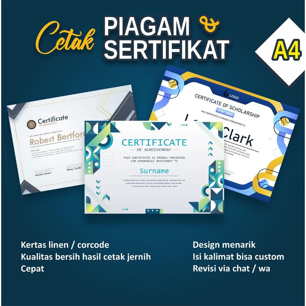 PIAGAM DAN SERTIFIKAT A4 BERKUALITAS
