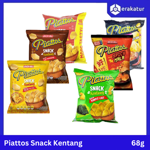Piattos Sapi Panggang, Kaju Pedas, Barbeque, Rumput Laut, Spicy Mala, Seblak 68 gr adalah salah satu camilan renyah dan gurih yang dapat menjadi pilihanmu. Merupakan keripik kentang berbentuk segi enam yang unik dengan tekstur yang tebal. Piattos dihasilkan dari kentang pilihan dan bumbu lezat yang akan menjadi kesukaanmu.