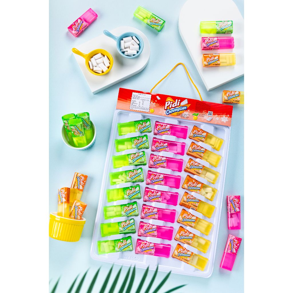 PIDI chewing gum mix adalah permen karet dengan beberapa Varian rasa. Ada rasa Blueberry, Strawberry & Tutti Fruity.