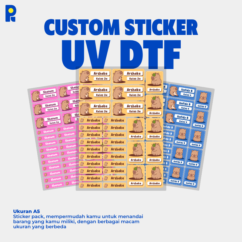 Sticker nama custom dengan desain karakter lucu ini hadir untuk memberikan solusi praktis dalam menandai barang anak atau perlengkapan rumah tangga. Terbuat dari bahan UV DTF berkualitas tinggi, stiker ini memiliki cetakan tajam yang tahan lama dan tidak mudah pudar, serta tahan air, sehingga cocok digunakan dalam berbagai keperluan sehari-hari.